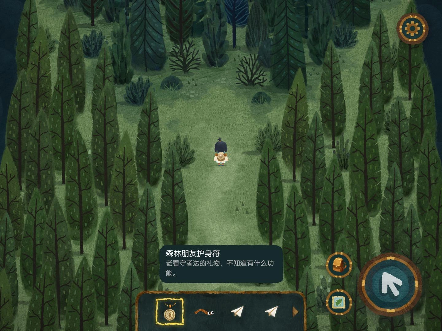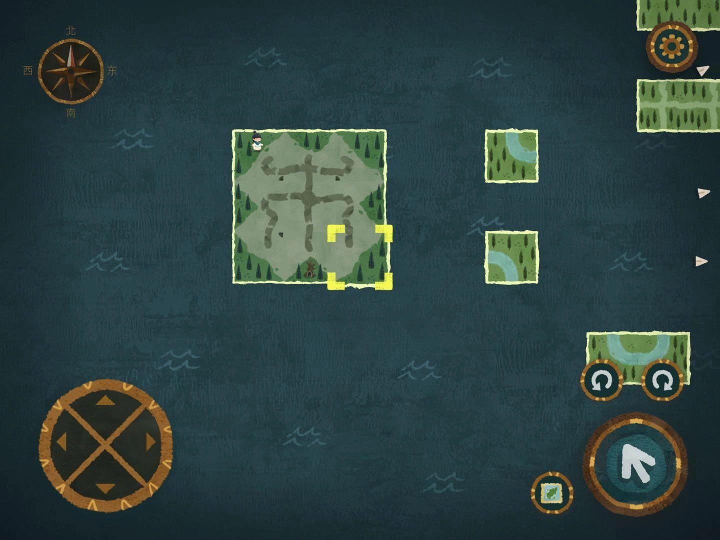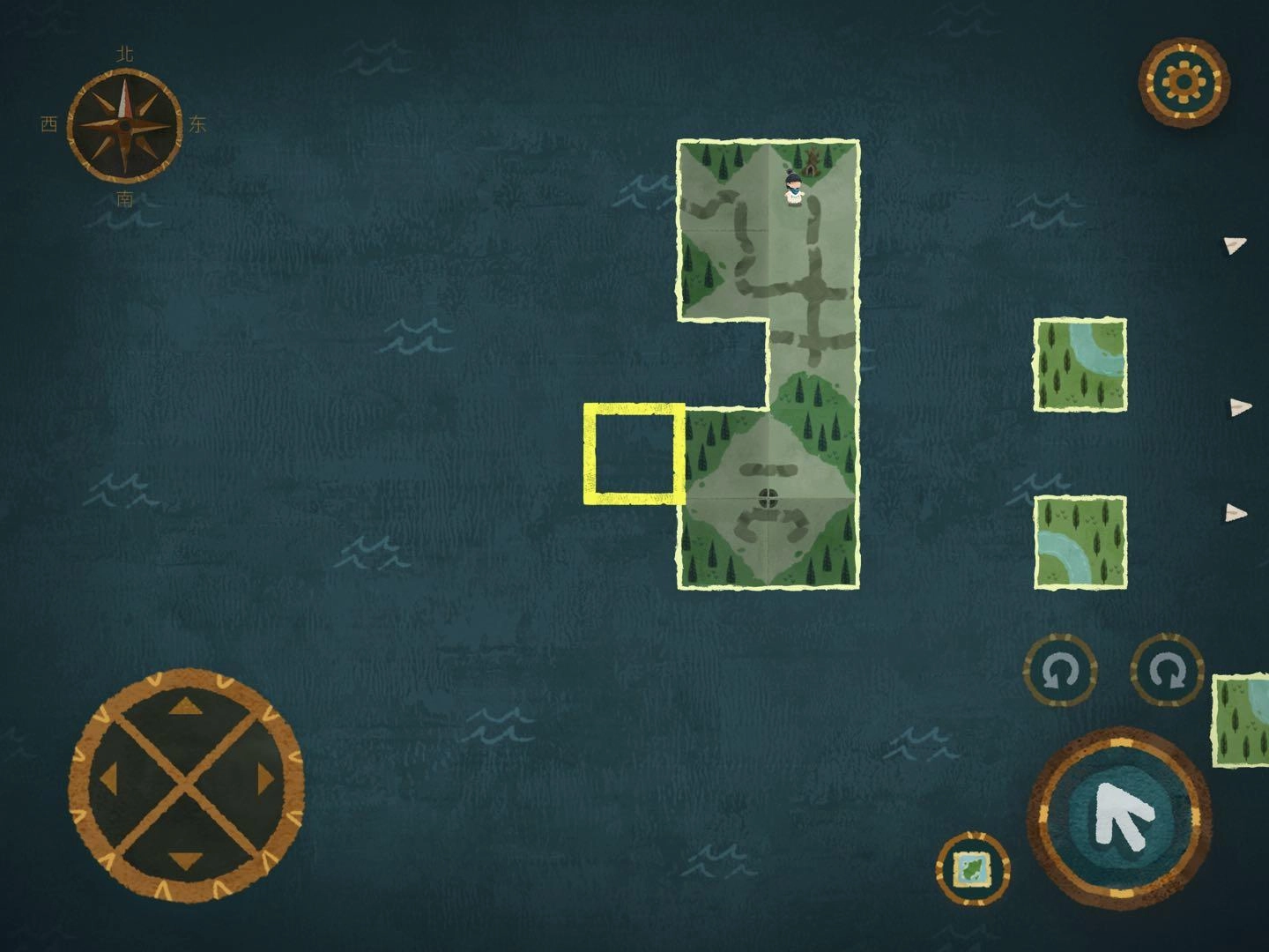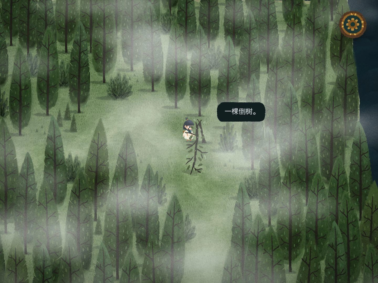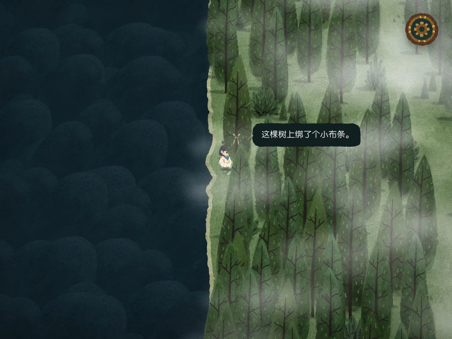 2.找森林的路這部分得謝謝迷失攻略組,我自己也沒搞明白,是看攻略才懂的,哈哈哈哈。建議大家盡量自己探索,看攻略的話游戲進度會太快,很快就玩完了……進入任意一張地圖碎片后,要找樹上的小布條。比如小布條在西方的話,就把另一片迷霧地圖碎片放到西方位置。進入地圖碎片時如果出現音符,說明放對了;要是出現問號,那就是放錯了。