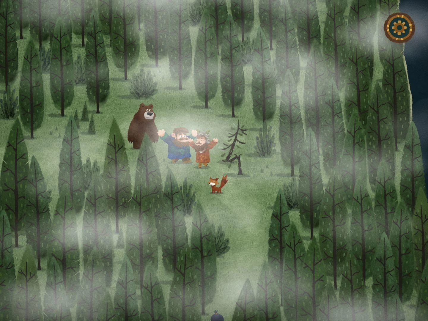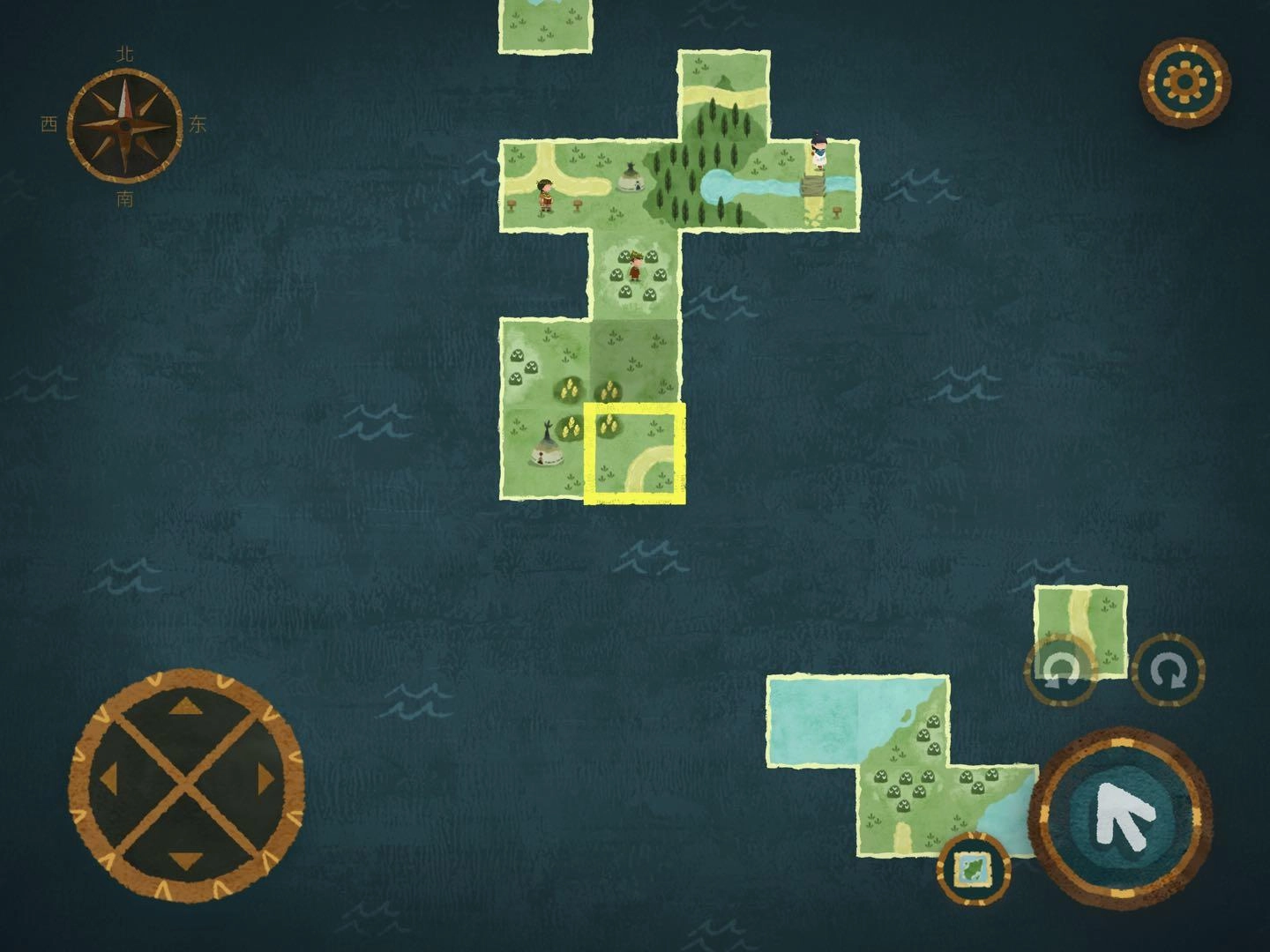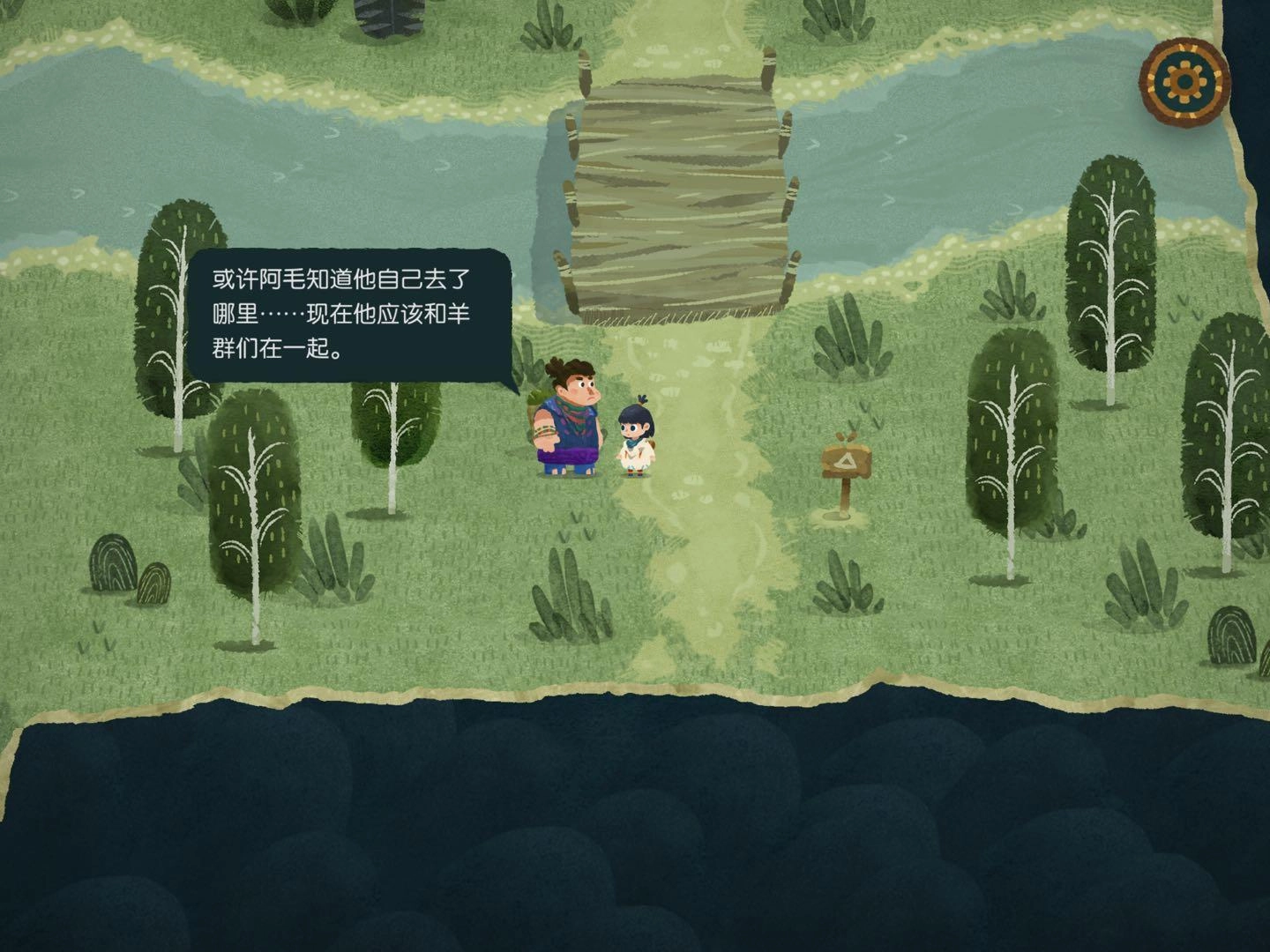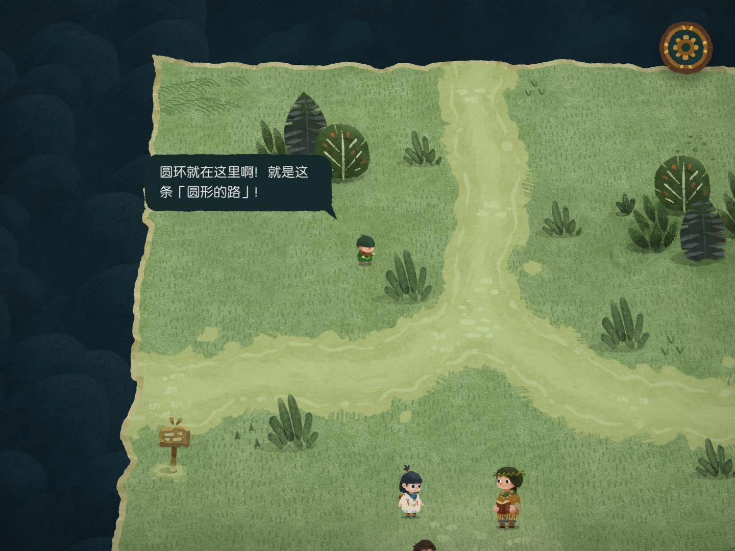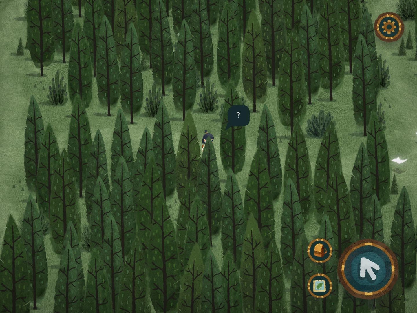2.找森林的路這部分得謝謝迷失攻略組,我自己也沒搞明白,是看攻略才懂的,哈哈哈哈。建議大家盡量自己探索,看攻略的話游戲進度會太快,很快就玩完了……進入任意一張地圖碎片后,要找樹上的小布條。比如小布條在西方的話,就把另一片迷霧地圖碎片放到西方位置。進入地圖碎片時如果出現音符,說明放對了;要是出現問號,那就是放錯了。