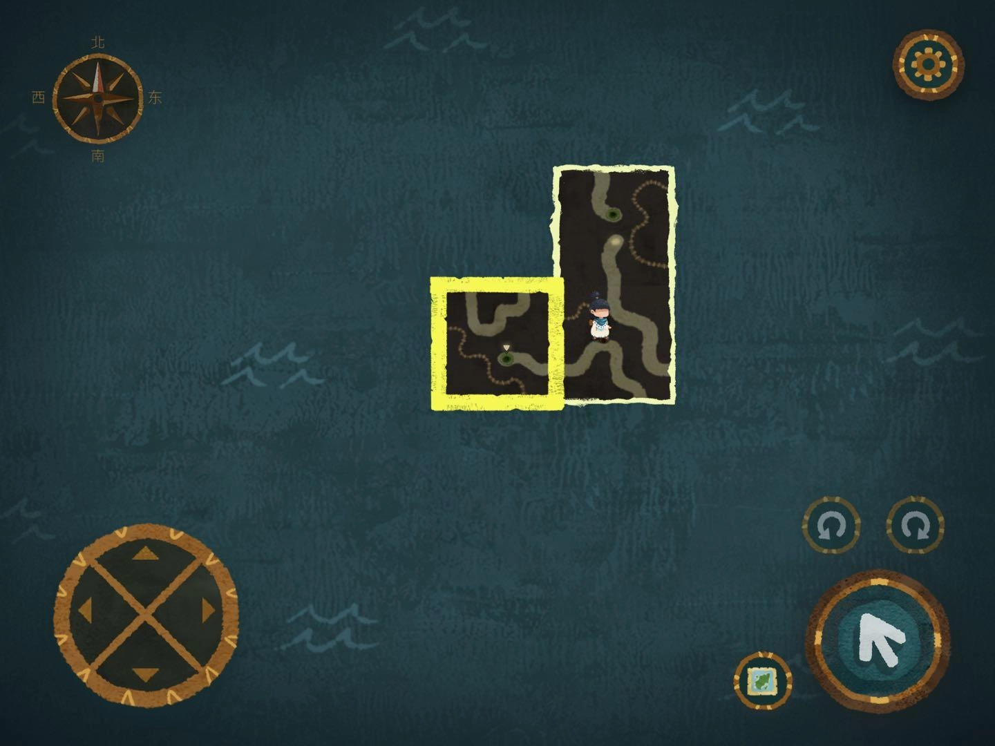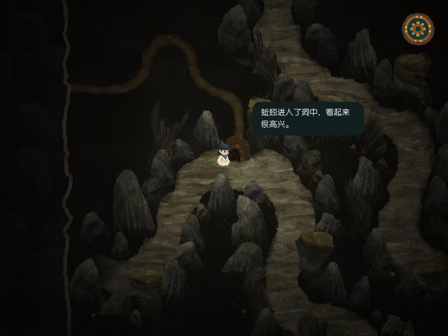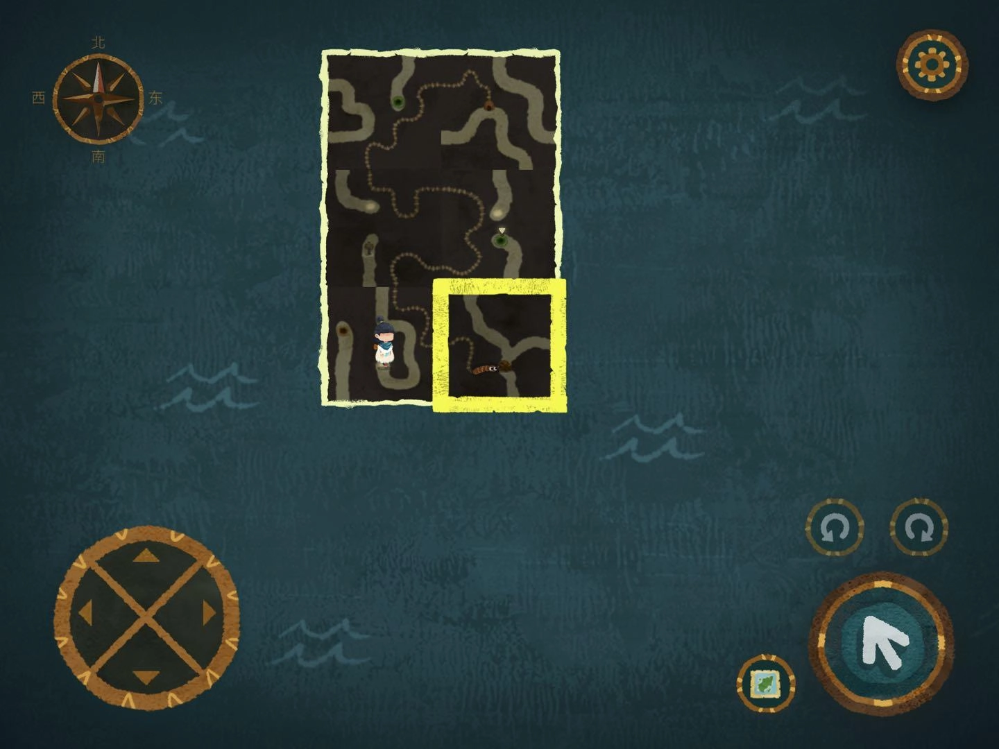 9.轉動并移動地圖碎片,分別前往蚯蚓巢穴獲取蚯蚓,再進入帶有三角標志的入口。