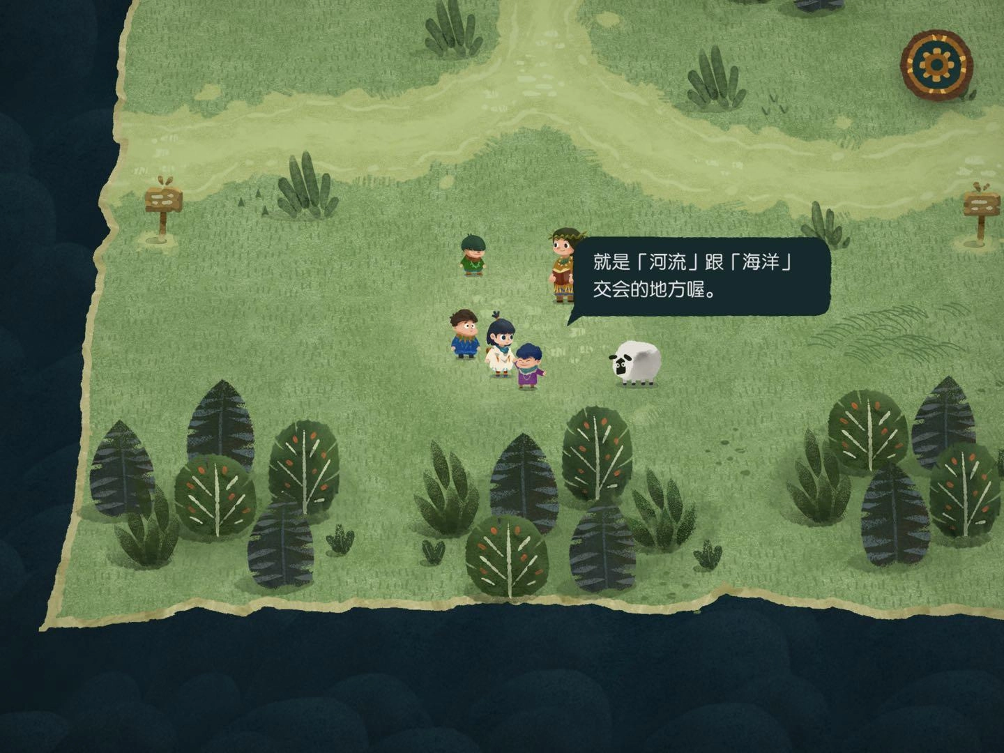 4.尋找森林的路3,把地圖碎片放置在風吹樹傾斜的方向就行,進入地圖碎片時若出現音符則正確,出現問號則錯誤