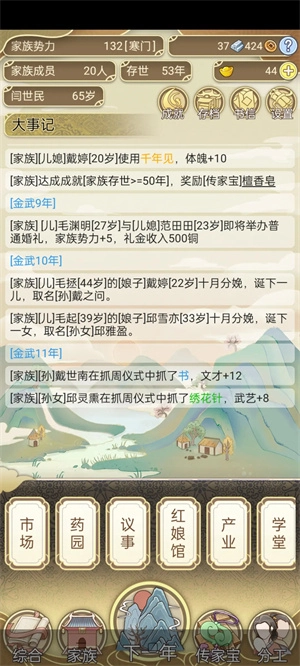 3、豐富的家族事務(wù):從家族成員的生死大事到孩童的教育問(wèn)題,游戲中的隨機(jī)事件為玩家提供了豐富的決策挑戰(zhàn)。
