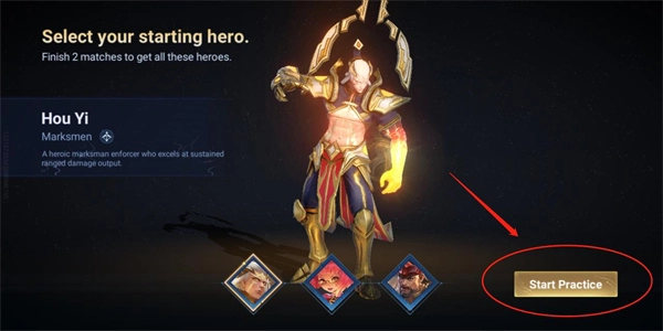 3、然后選擇新手英雄,再去點擊【Start Practice】。