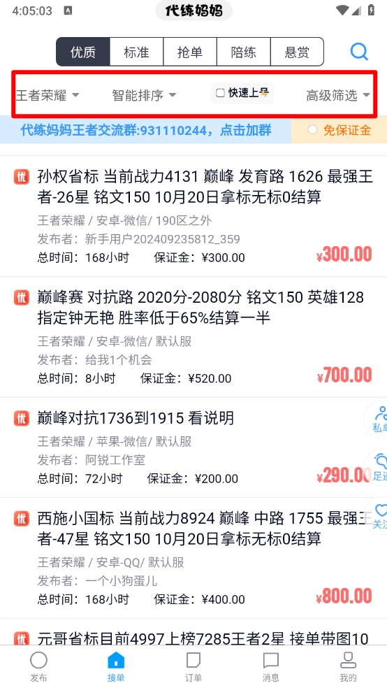 4、如圖,篩選所需接單的游戲,并點擊進入。