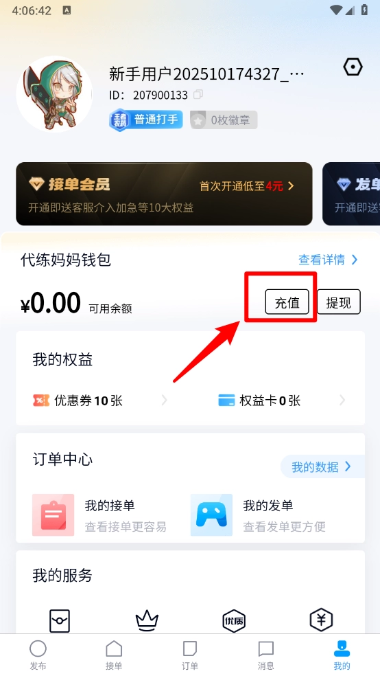 2、需要在我的頁面點擊"充值"保證經后方可接單。