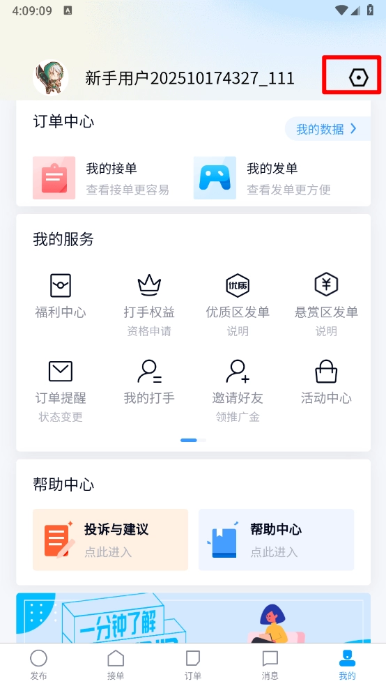 1、啟動軟件后,進入“我的”頁面,點擊右上角的設置圖標。