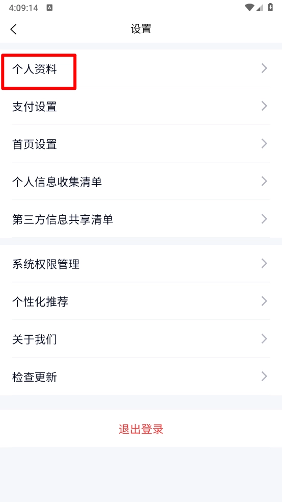 2、如圖,在設置頁面選擇"個人資料"進入。