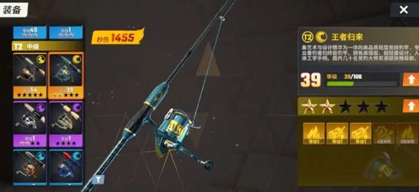 2、魚竿有梯度劃分,且分淡水和咸水兩種類型,因此每個(gè)梯度需要升級2個(gè)魚竿。前期用藍(lán)紫品質(zhì)的魚竿過渡,攢一些金幣,等金色魚竿出來后再把它升滿。