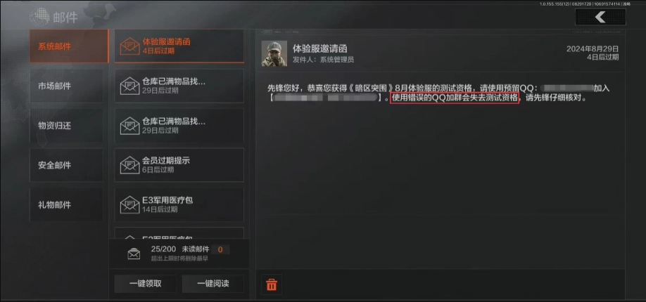 3、獲取資格后一定要加入暗區突圍游戲QQ群,這是激活體驗服資格的必要條件,即使收到了資格相關郵件,若未按郵件提示加入QQ群,仍將無法激活資格。