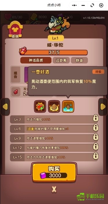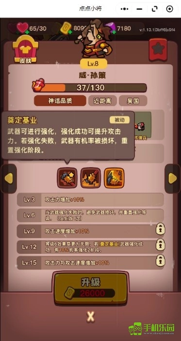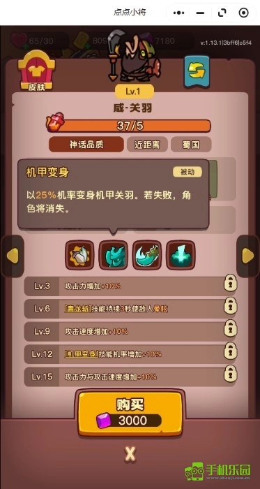郭嘉:鑄幣機,局內可以自動產幸運幣,不管是拿來點強化、抽獎還是配合某些特定武將的機制都有大用,6級質變