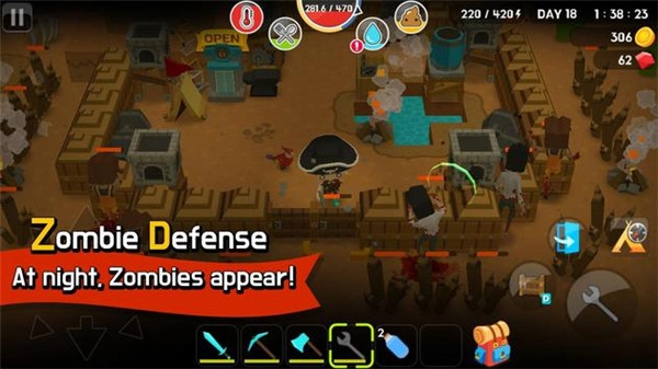 夜晚來臨的時候,會有僵尸來襲擊我們的基地,所以必須要拿出武器來戰(zhàn)斗,保護(hù)好自己的基地建筑。