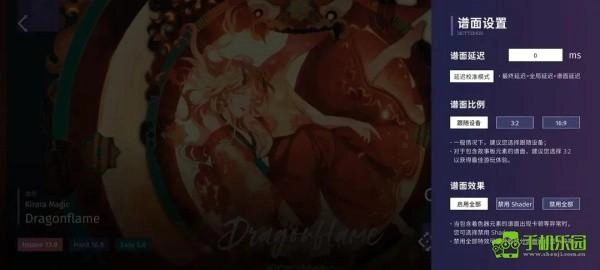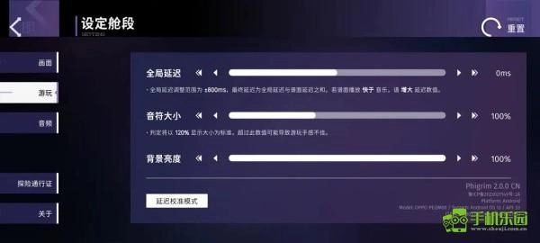 同Phigros一樣,一些基礎設置,比如按鍵大小,背景亮度是兩款游戲都有的,也就是全局設置;與Phigros不同的是,由不同機型,不同設備制作的譜面,其屏幕比例,延時不盡相同。因此除了全局設置外,還有譜面設置。接下來會對兩種設置進行介紹。