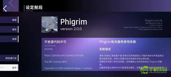 玩家可以在此頁面查看源代碼許可,版本號,設備信息,服務條款等信息。