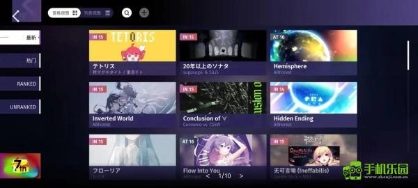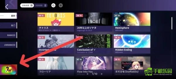 RANKED可以查看已過審譜面,此欄目內的譜面計入RKS計算。