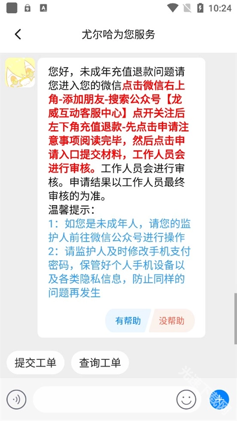 4、如是未成年充值,則可以選擇第一項“未成年充值退款”;