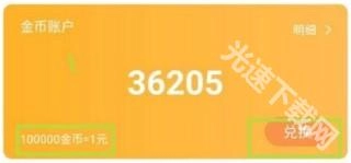 2、另外還能看到【兌換】,100000金幣等于1元,因此想要提現就要先積攢金幣。