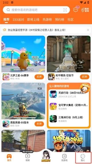1、首先打開233樂園軟件,進入到首頁中后點擊右下角的【我的】;