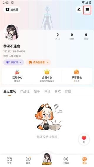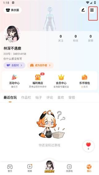 2、然后在我的頁面中可以查看很多的信息,在這里點擊右上角的【三橫圖標】;
