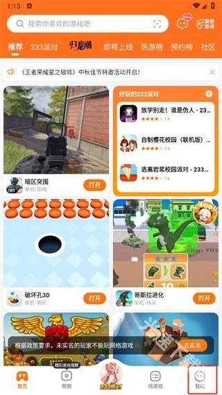 1、首先需要安裝233樂園,進入軟件之后,點擊“我的”板塊;