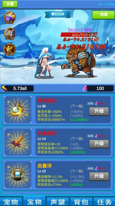 這是一款豎屏冒險戰斗游戲,操作極為簡便,玩家只需輕點屏幕即可,連技能都能自動釋放,唯一需要專注的操作或許就是不斷升級了。角色的戰斗力能夠通過寶物、寵物、裝備、技能等多種方式來提升,而且這里每一種提升戰力的途徑都可以升級,只是每個板塊升級所需的材料各不相同。