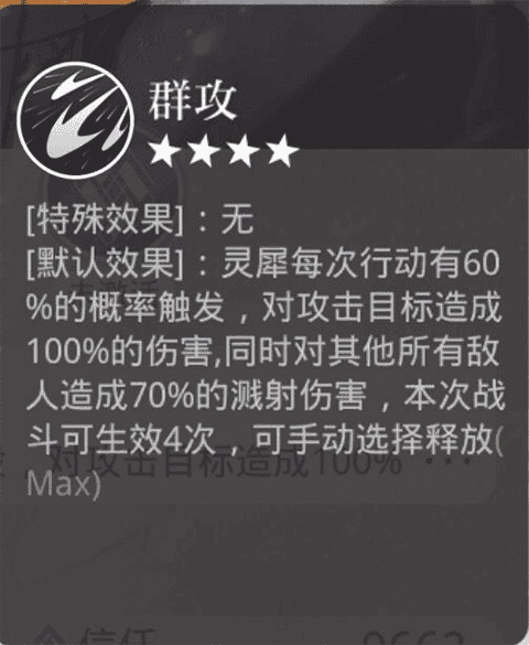 (1)群攻:群傷,一次性傷害,概率觸發(fā),一局最多觸發(fā)4次。