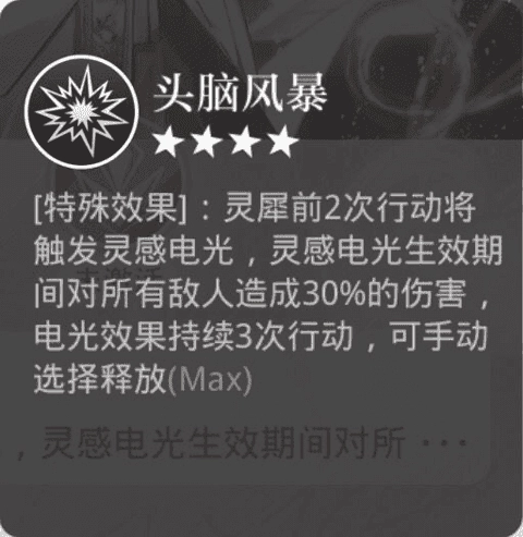 (2)頭腦風暴:群體傷害,效果持續(xù)3回合,必定觸發(fā),一局游戲內(nèi)最多可觸發(fā)2次。