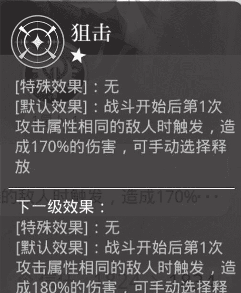 (4)狙擊:遇到同屬性觸發(fā),造成單次百分比傷害,無次數(shù)觸發(fā)限制。