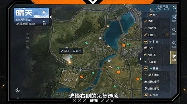 直接打開地圖界面,點擊右側的【采集】,地圖上就會出現各類資源位置的標注,按照需求進行采集即可。