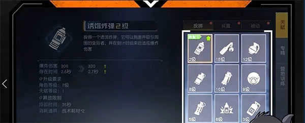 在三項常規技能中,投擲技能多為不同類型的手雷;
