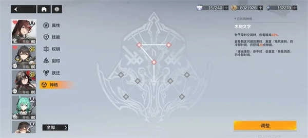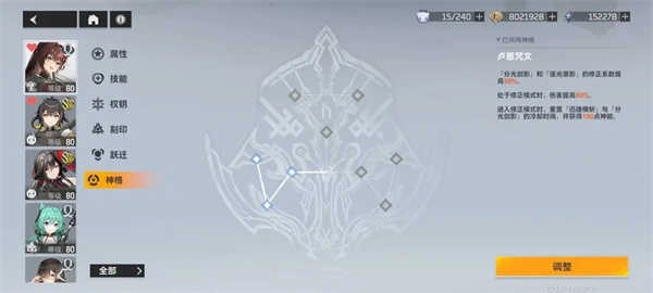 同調2級時,作為主要輸出手段的在點出神格「破棘」時三技能獲得【基礎傷害提升】30%,經過測算,計算方法為計算(可能不準),同時因為右線神格較少點出,故優先級非常低。