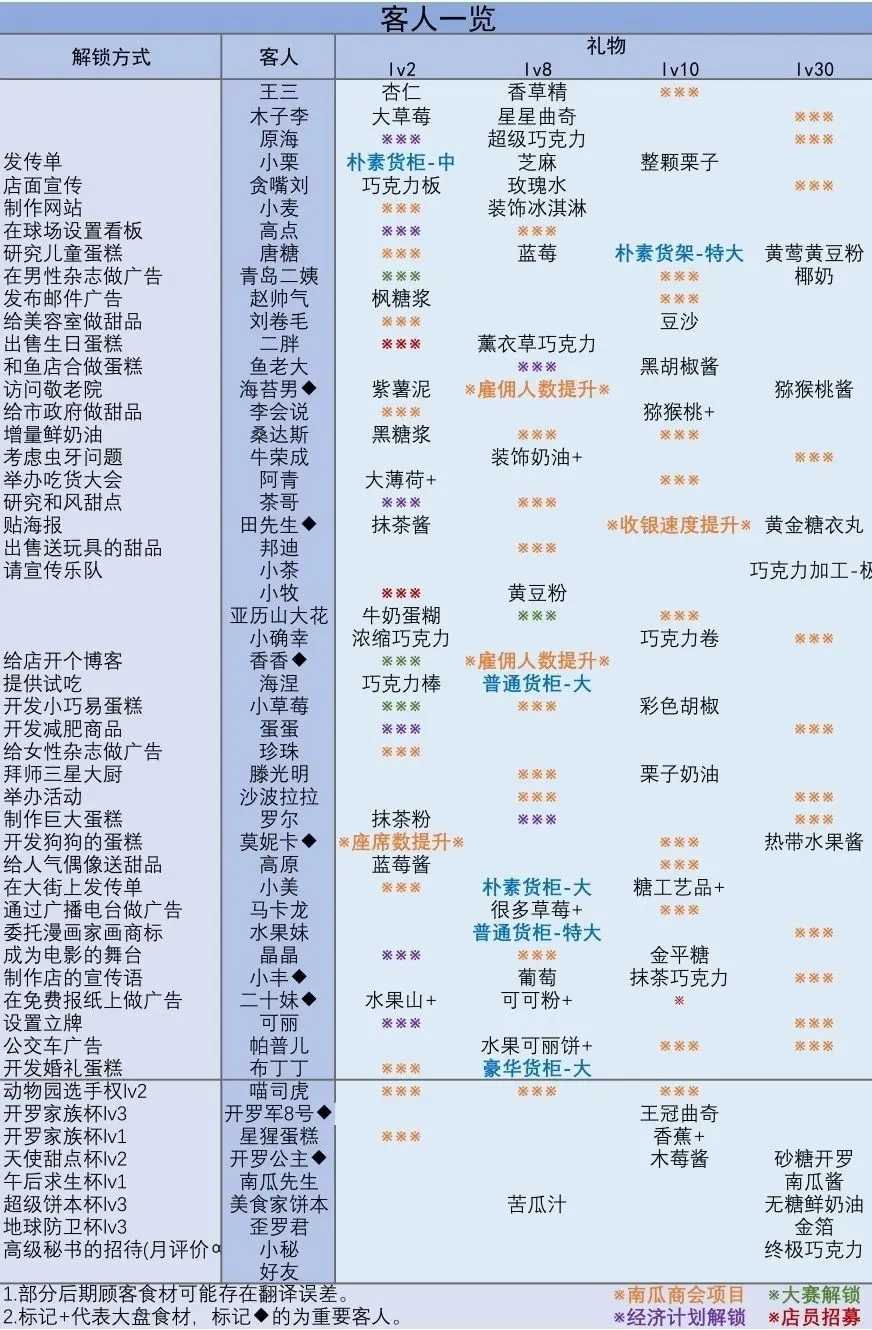 游戲內每個客人都有自己喜歡的口味以下為大家總結: