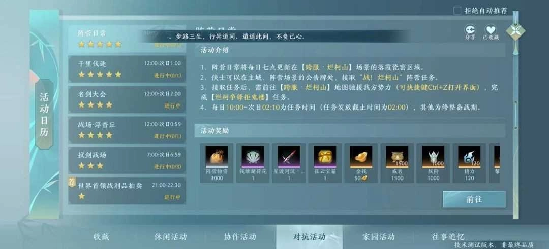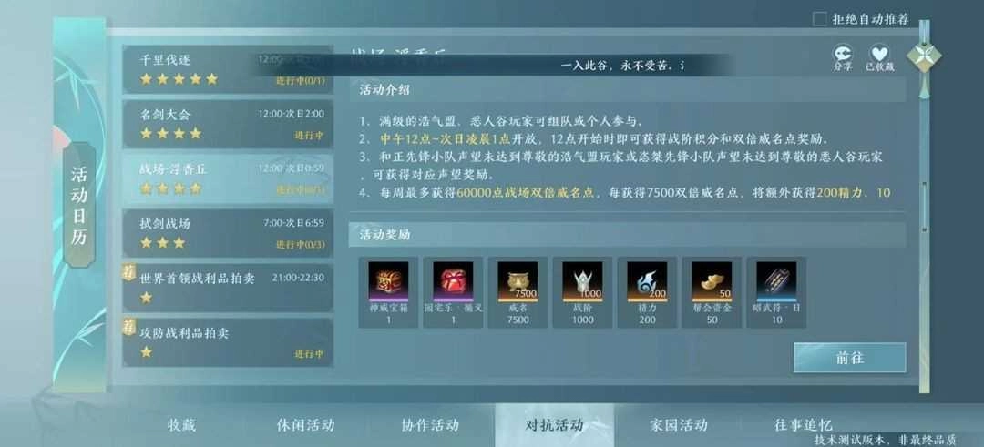 其中【陣營日常】【千里伐逐】以及【戰場】屬于是陣營任務,活動中浩氣盟和惡人谷兩個陣營的玩家是需要進行對抗的。如果你想要參與,首先需要選擇加入浩氣盟或者是惡人谷的其中一方,然后才能接取任務。
