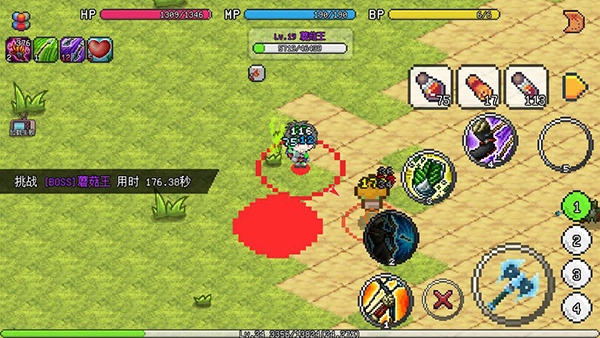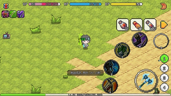 2、打boss射手先把強化疊到1000反正夠用就行,先裝備回1000血的藥(雪原城賣)然后就可以走位刷,后撤這個技能有無敵,必定閃避傷害。