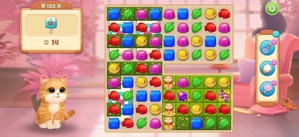 貓友們在通關時可以看到關卡內有些圖塊上帶有小硬幣的標志,只要消滅這些圖塊就可以獲得硬幣,為貓咪們裝飾【暖陽春游】房間。