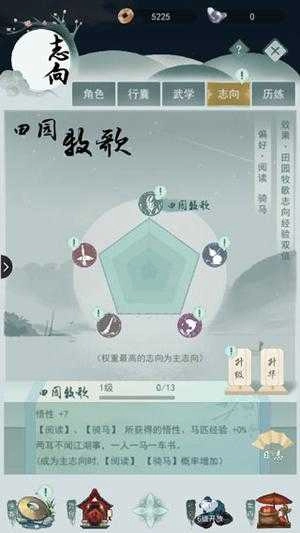 角色共有田園牧歌、縱橫武林、浪客俠心、騷人墨客、玩物喪志五種。