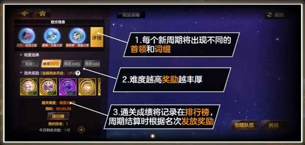 值得一提的是,噩夢斗場會記錄每一位挑戰者的成績,并將其制作成排行榜來激勵那些勇于挑戰的勇士。噩夢斗場以七天為一周期,周期性地為排行榜上的挑戰者結算獎勵,而名列前茅的各位除了應得的獎勵外,還將獲得特殊稱號。