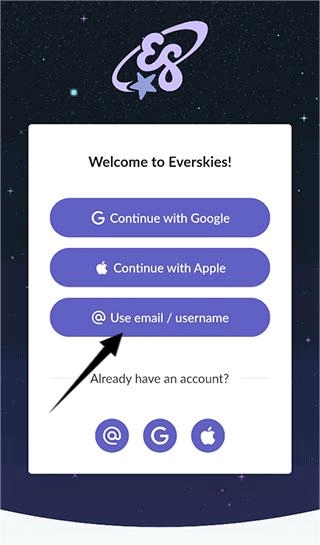 1、在本站完成everskies游戲的安裝后,打開游戲并等待2至3分鐘,隨后選擇“use email”這一登錄方式。
