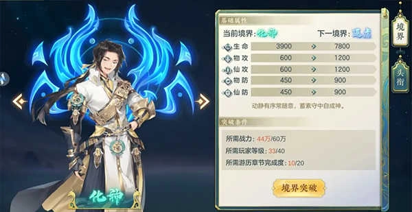 突破境界需要完成對應的突破任務,達到任務要求才可以突破,需要戰(zhàn)力、等級和主線游歷章節(jié)滿足要求。