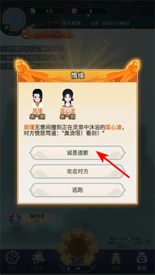 3、游歷觸發情緣事件時,選擇對應選項可推進劇情發展,這是建立角色關系、獲取增益的關鍵操作,影響后續的人際羈絆與資源收益。