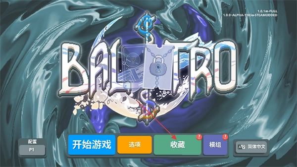 進(jìn)入小丑牌神秘生物模組主界面后,點(diǎn)擊“開(kāi)始游戲”即可啟動(dòng)游戲,此外也能通過(guò)“選項(xiàng)”“收藏”按鈕執(zhí)行對(duì)應(yīng)的功能操作。