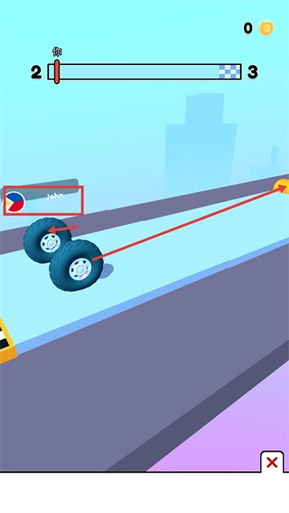 2、關卡內出現【John】標識,查看上方2-3進度條的“你”的位置,操控輪胎跟隨指引向目標方向移動推進。