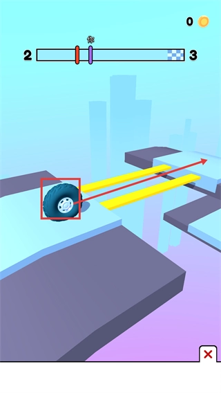 3、進度條中“你”的位置更新,操控輪胎通過黃色設施區域,保持移動方向,持續推進關卡的進度。