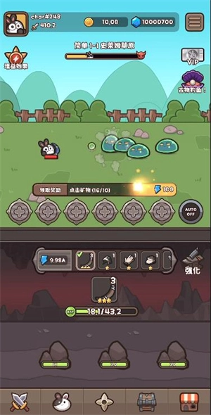 2、將結(jié)識并招募一個由 個性鮮明、背景各異的兔子勇士組成的傳奇小隊。從堅不可摧的盾衛(wèi)到詭計多端的法師,每位英雄都擁有自己的故事和專屬能力樹。培養(yǎng)他們之間的羈絆,實(shí)驗不同的上陣組合,是探索游戲深度策略的樂趣所在??梢試@某位核心英雄打造專屬陣容,能根據(jù)戰(zhàn)場需求組建一支能力均衡的萬能小隊。