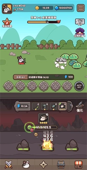 1、進(jìn)入游戲后,角色會自動攻擊出現(xiàn)的怪物敵人,擊敗這些敵人就能獲取金幣。
