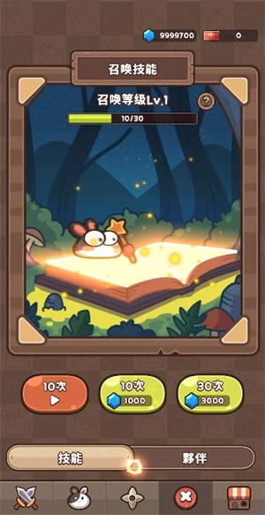 5、點(diǎn)擊寶箱按鈕可以消耗鉆石來抽取技能與伙伴,每次抽取可以獲得的技能與伙伴都是隨機(jī)的。