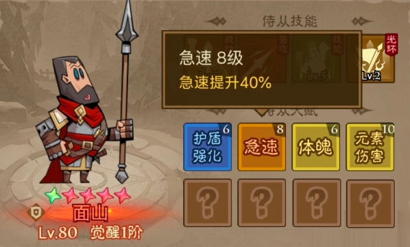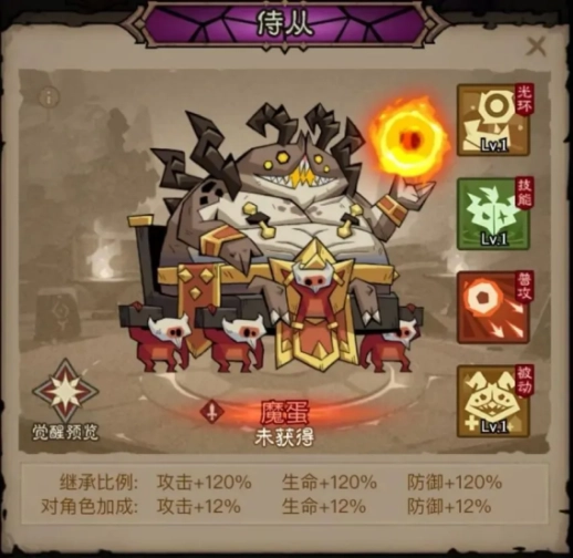 魔蛋:侍從界“六邊形戰士”,爆發與續航雙重優勢;三維屬性拉滿(125%攻擊+115%生命+115%防御),主動技能召喚“惡魔軍團”(士兵扛傷+統領加buff),光環提供35%急速+35%回能,堪稱“一人成軍”
