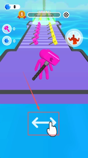 3、巨錘突破闖關:借助變大的錘子擊碎途中障礙,掃清前進阻礙,穩步向終點推進并鎖定最終敵人。
