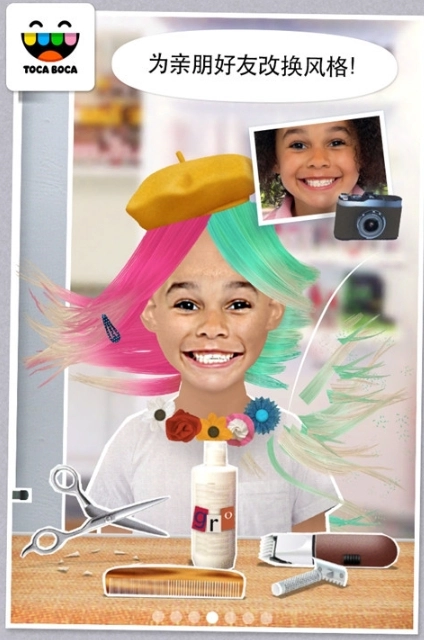 隨心所欲地對頭發(fā)進行修剪造型,頭上任何部位都可以重新長出頭發(fā)! 這個造型站提供了卷發(fā)、拉直和定型的加熱美發(fā)工具;另有色彩繽紛的染料瓶,可以將頭發(fā)染成斑斕色彩。你的創(chuàng)意會帶來怎樣獨特的造型?