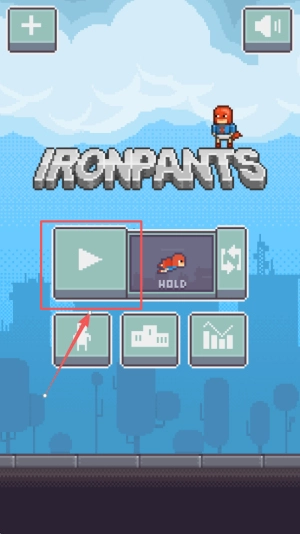 1、啟動游戲:先打開IRONPANTS的主界面,界面上會顯示“HOLD”提示,此時即可準備進入挑戰模式。