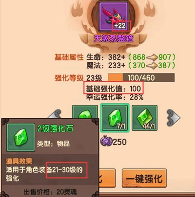 例如1級強化石適用于裝備1-20級的強化,2級強化石適用于裝備21-30級的強化;