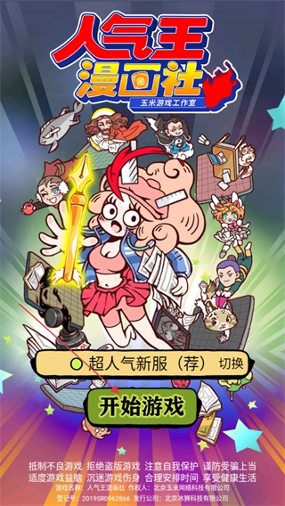 1、這是人氣王漫畫社的游戲啟動界面,選擇超人氣新服后點擊開始游戲按鈕,就能進入游戲。